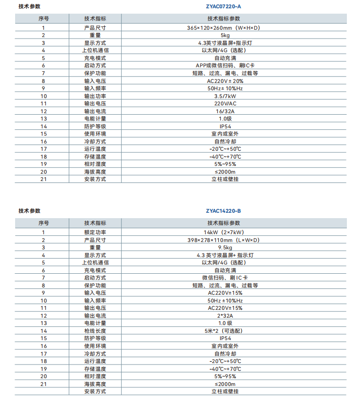 交流充電樁ZYAC07220-A/ZYAC14220-B